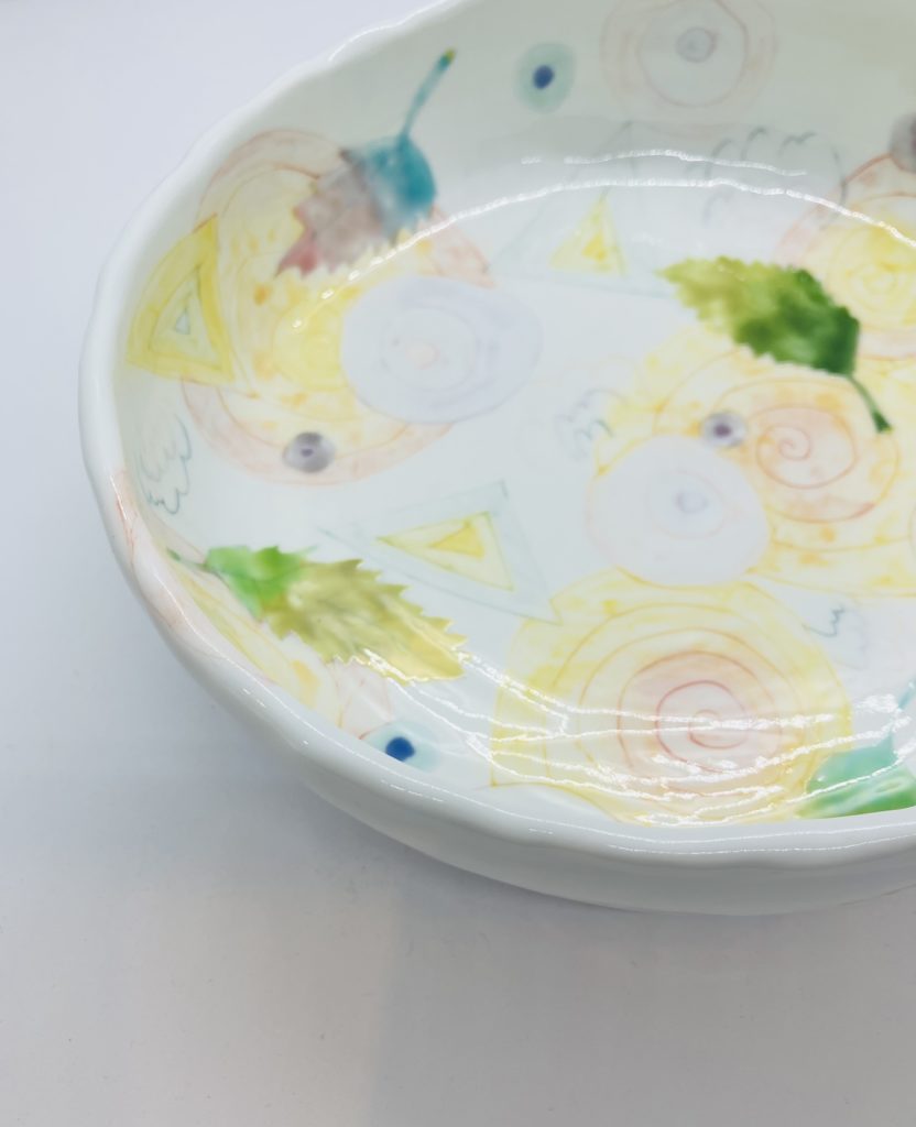 うつわの全面に絵付けされていてしかも底面が球状なので置いてもまっすぐにはなりません。