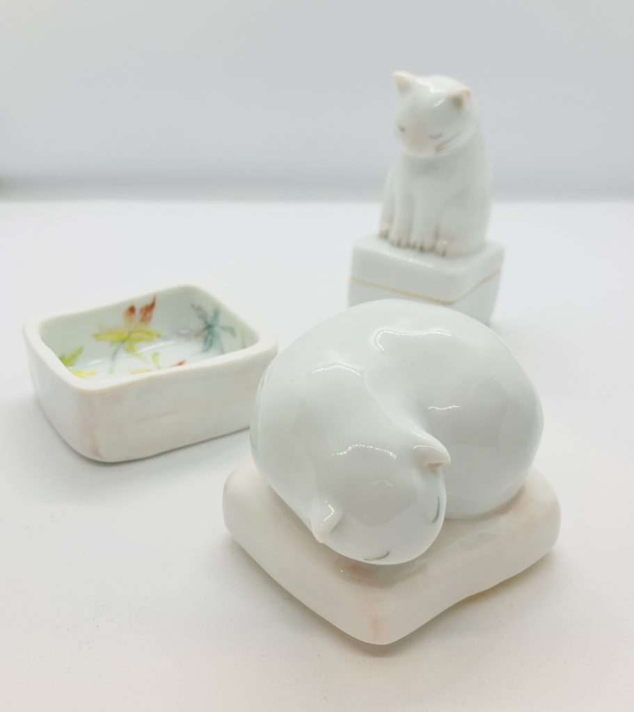 ねむりねこ箱(7cm x 6cmx8cm 7,150円)すわりねこ箱(4.5cmx4cmx9.5cm)