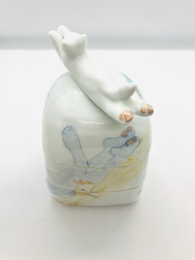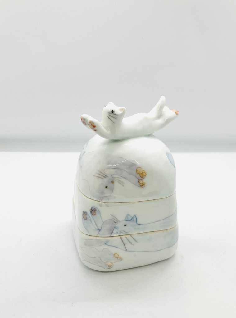 ねこ二段蓋物(8.5cmx8cmx12cm 11,000円)